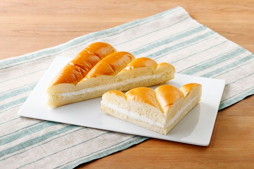富士山に隣接する、静岡県産・山梨県産の生乳のみを使用する「富士山牛乳」入りホイップクリームをサンドした、ボリュームのある三角形のパンです。