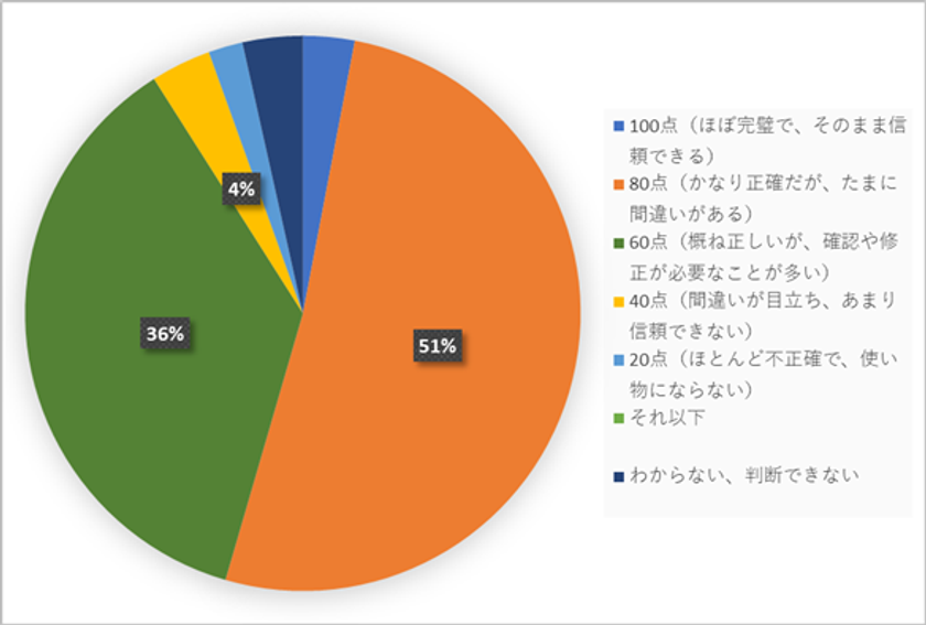 設問:会話型AIサービスの精度(回答の正しさ)に点数をつけると、合計で何点くらいですか。現在のあなたの実感に近いものをお選びください。