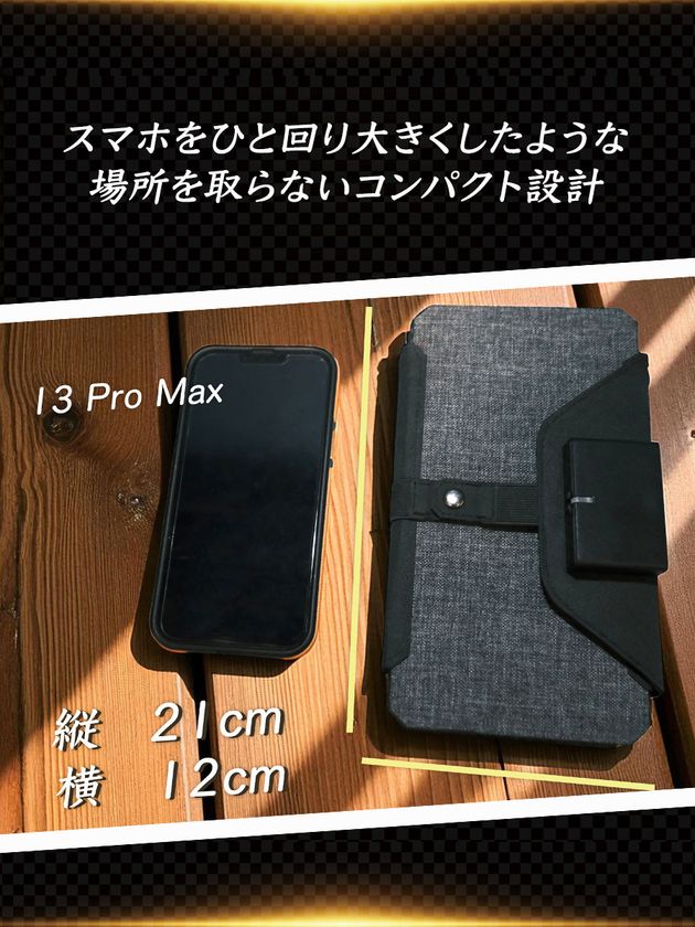 3) 折りたたみ時21×12cm/641.5g:持ち出せる電源へ