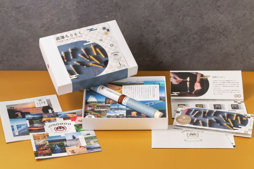 A4サイズより一回り小さな箱に収められたギフトバコには、「高澤ろうそくカタログ」と「旅するふるさと絵巻物(能登編)」や「旅するふるさとマガジン(石川版・能登版)」を同梱。おうちで石川や能登へのプチトリップを楽しめる、ユニークな仕掛けの“ツウな能登発見”カタログギフトとなっています。
