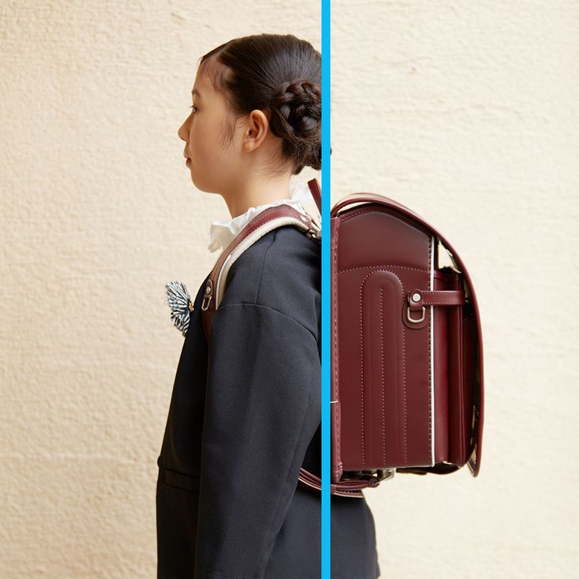 オオバランドセルは、創業より90年以上にわたり、子供たちが毎日を安心して過ごせる“軽さ”と“心地よさ”にこだわり、「軽くて、丈夫、そして美しい」かたちを追い求めてきました。ふっくらとしたカブセのシルエット、オオバランドセル独自の特許形状により、お子さまが背負った姿がスタイリッシュに。