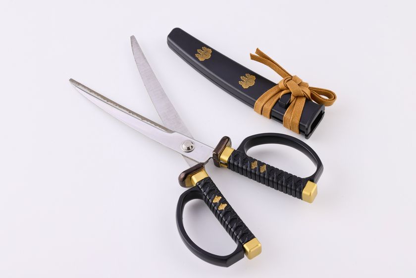商品の特徴としては、一見して日本刀のような見栄えで、刃体の沿りや刃紋にこだわっている事、豊臣家の家紋“五七の桐”をあしらっている事、更に、岐阜県関市の刃物職人が1本1本丁寧に刃付けをしているため、切れ味抜群です。