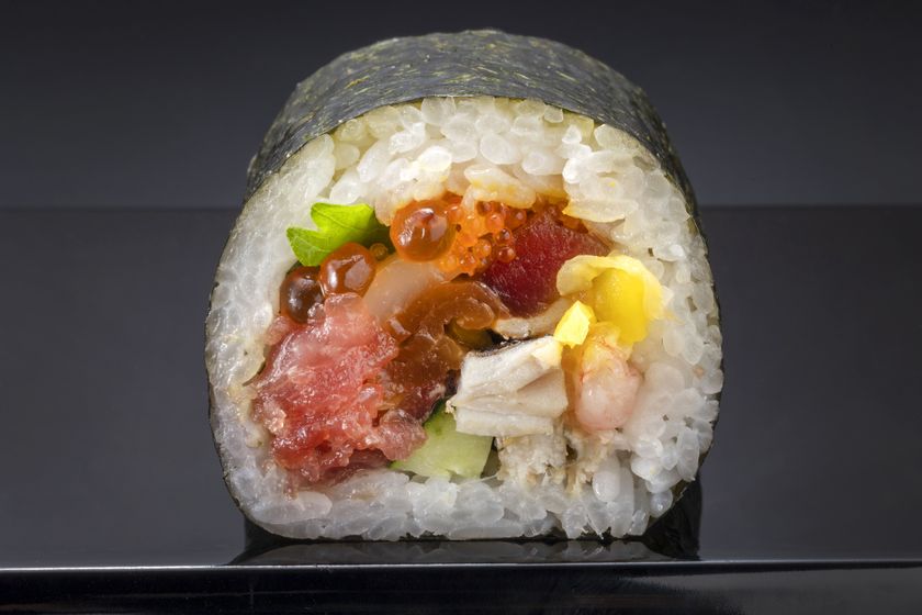 まぐろたたき/天然本まぐろ赤身漬け/江戸前すみいか/甘海老漬け/いくら/煮穴子/味付けかんぴょう煮/とびっこ/江戸前〆サバ炙り/胡瓜/刻み大根/大葉