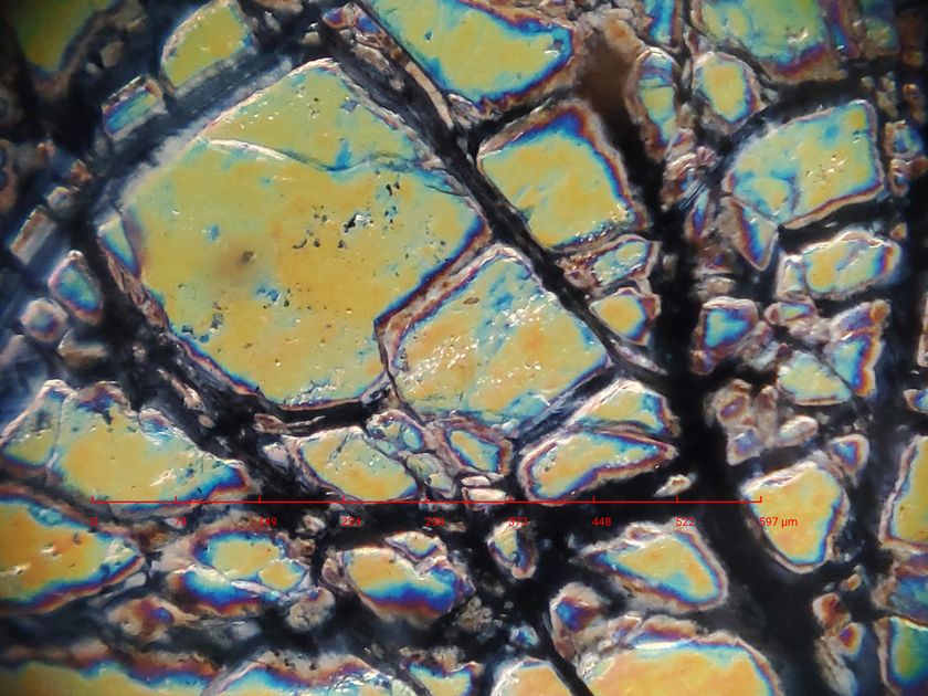 鉱物・岩石薄片・プラスチック・繊維など、身近な素材がカラフルな世界へと変化します。