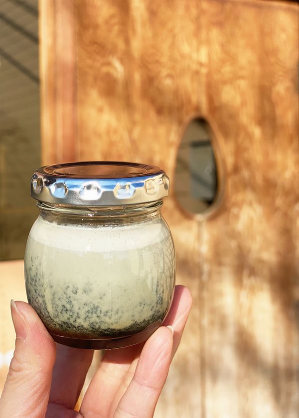 蔵造りの白と黒のなまこ壁をイメージして白と黒のプリンをホワイト、ブラックと名付けました。白いミルクプリンの上に自家製の真っ黒キャラメルソースをかけてお召し上がりください。