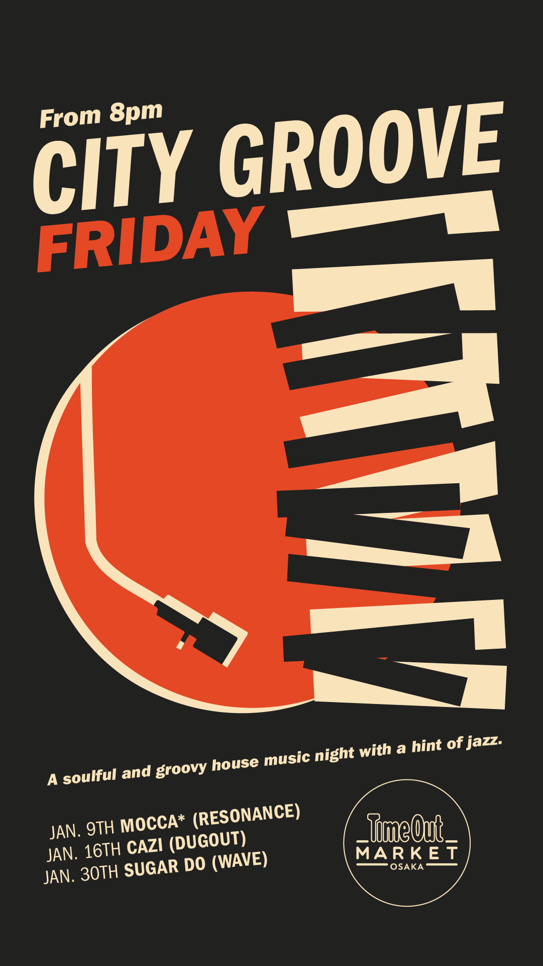 タイムアウトマーケット大阪が提案する、音楽と食が交差する金曜夜の定期イベント「CITY GROOVE FRIDAY」。ジャンルレスなDJプレイと、多彩な食のラインナップが融合し、都市の夜に新たなリズムを生み出します。