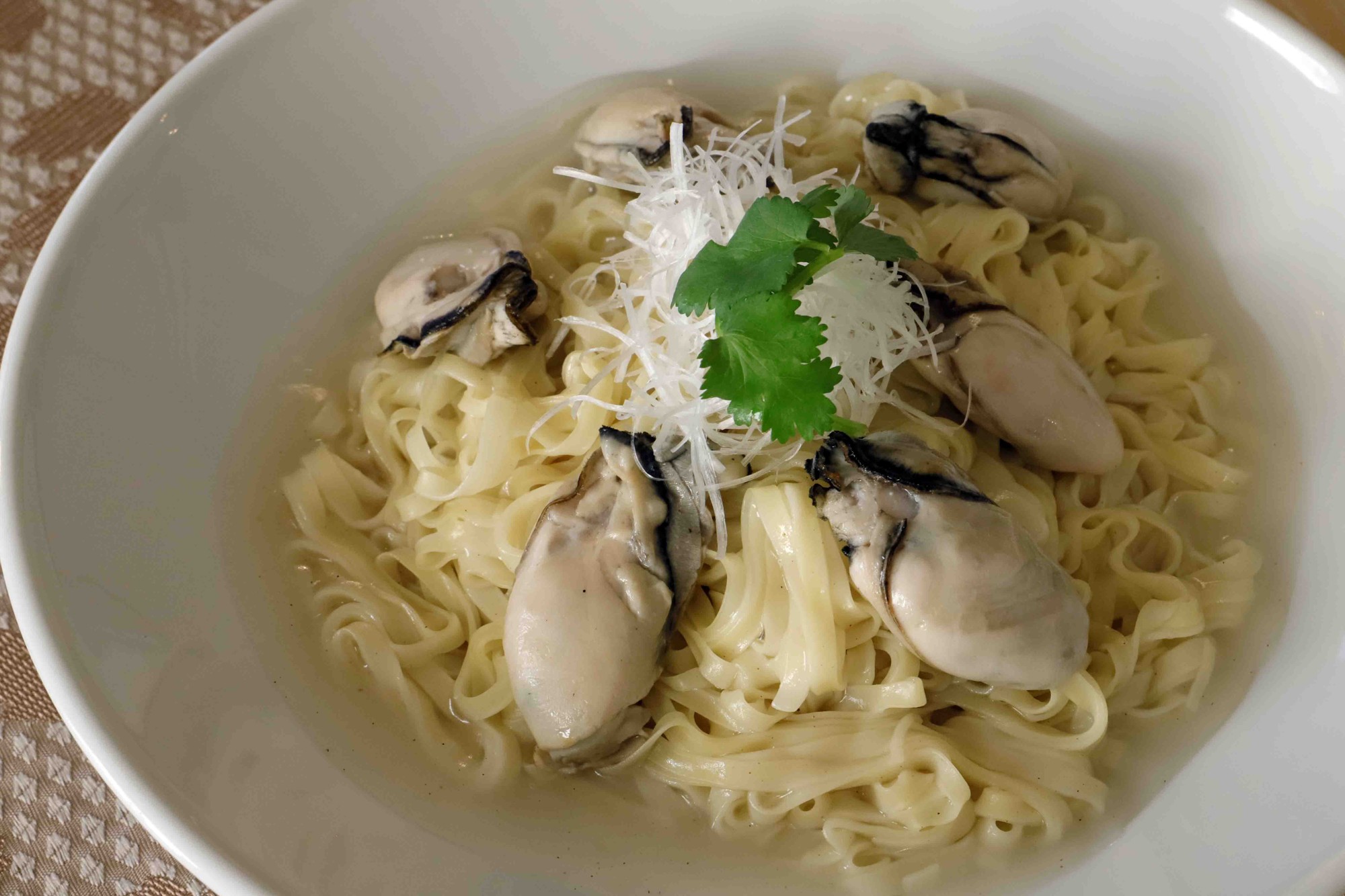 牡蠣の旨みを生かしたタレに、香り高いネギと生姜を合わせた和えそば。