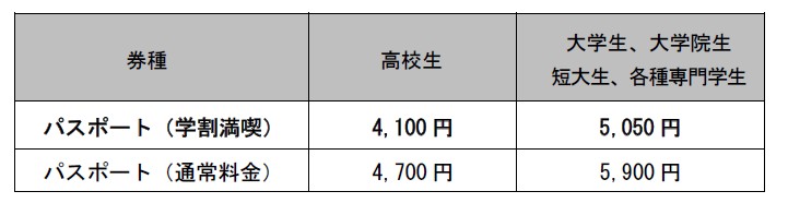 学生のみなさま(高校生以上)を対象に、お得にお楽しみいただける「学割満喫パスポート」を期間限定で販売します。