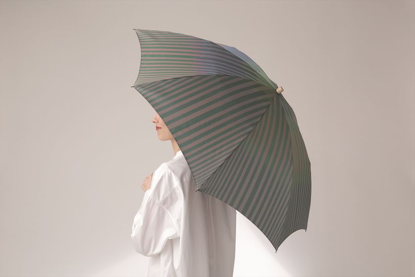 虹のように色が変化する美しい織りの晴雨兼用傘