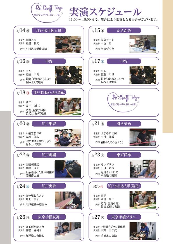 ※実演スケジュールは都合により変更となる場合がございます。