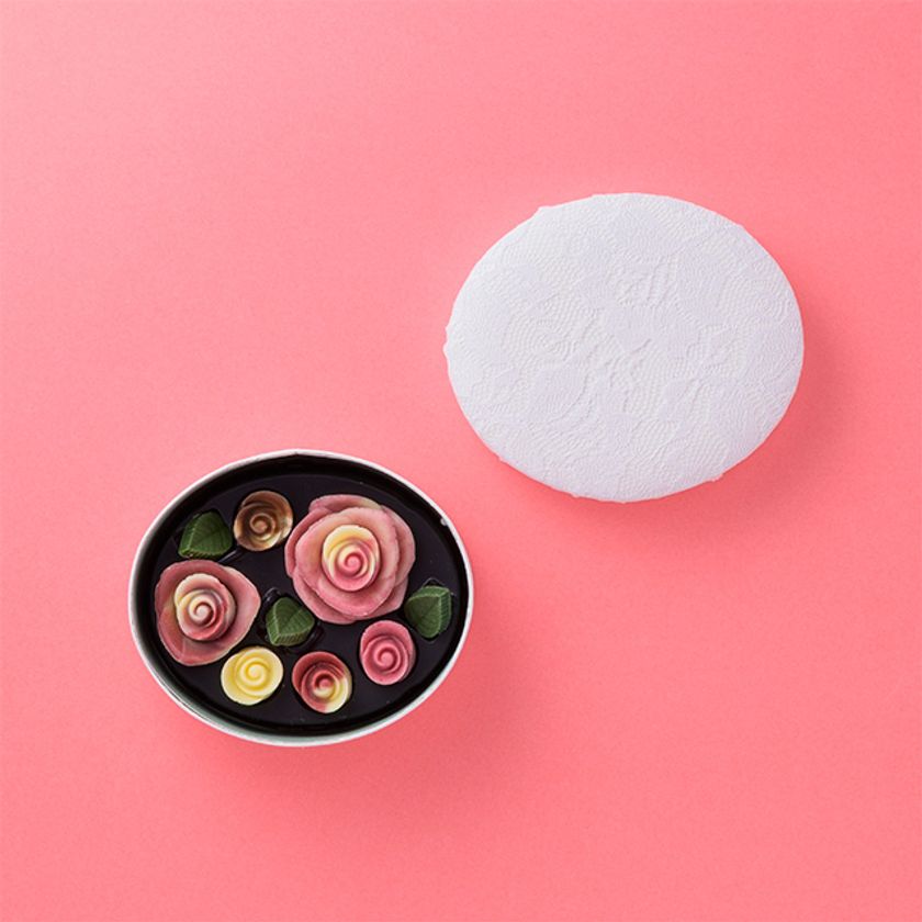 可憐なレースと繊細な薔薇のチョコレートを詰めたボックスです。