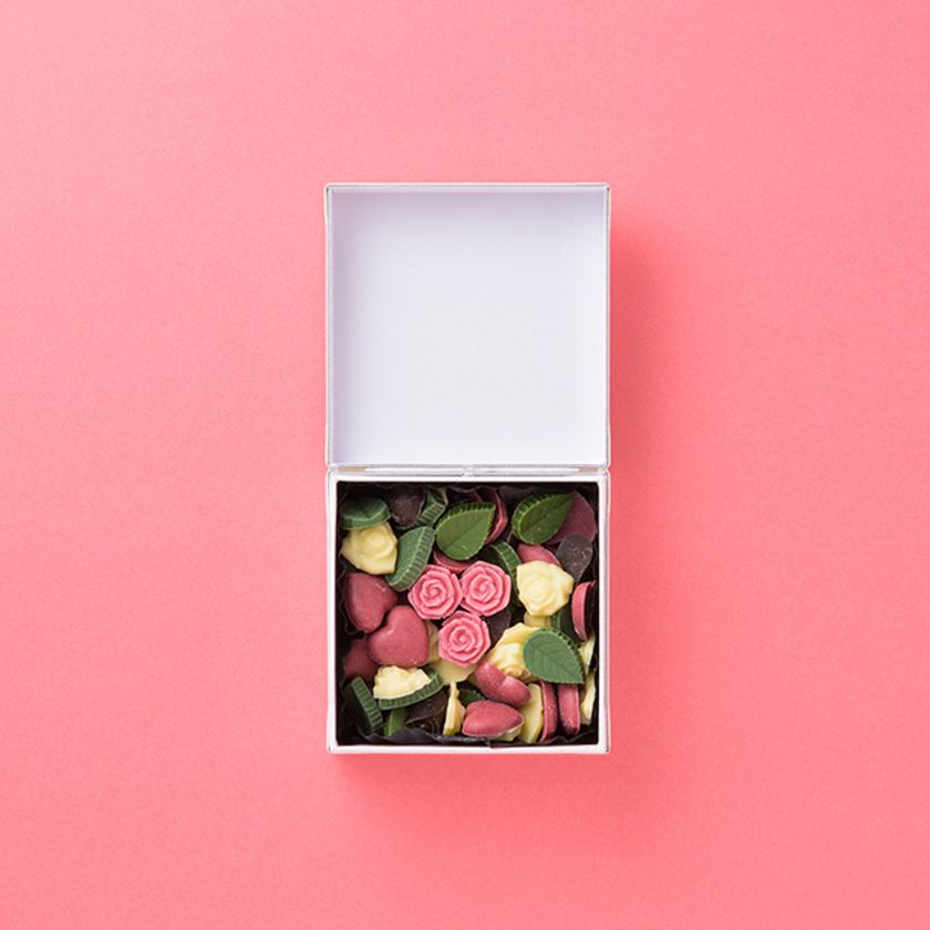 色とりどりのつぼみショコラを敷き詰めたフラワーボックス。