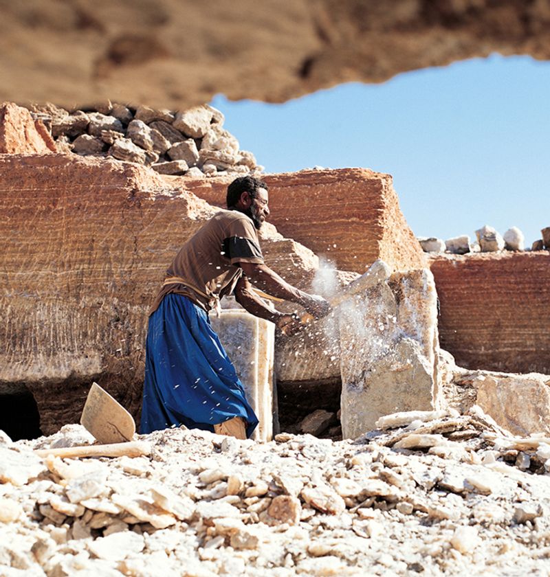 (Photo_06) タウデニの岩塩を切り出し整形する (マリ) 2003年 撮影:片平孝