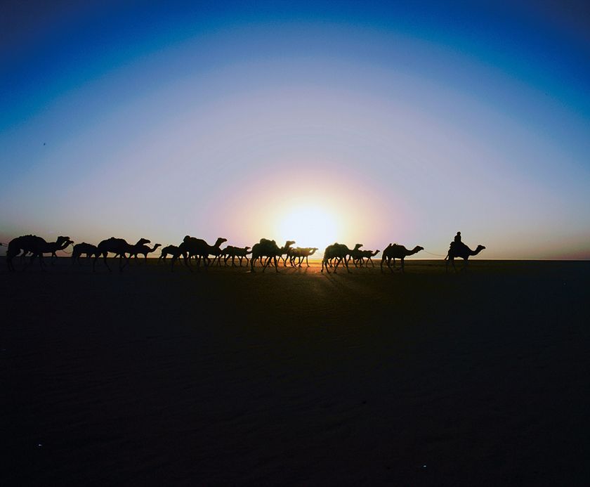 “旅の最初は1972年、ヒッチハイクのような形でとび乗った、サハラ砂漠のキャラバンだった。”