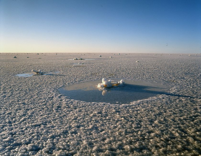 (Photo_08) エーア塩湖の湖面を覆う塩の結晶 (オーストラリア) 1991年 撮影:片平孝