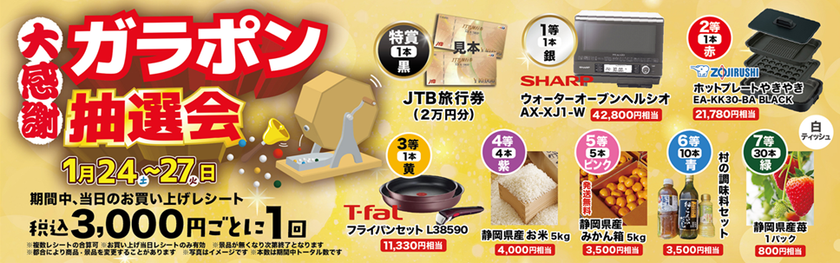 期間中、当日のお買い上げレシート 税込3,000円ごとに1回
