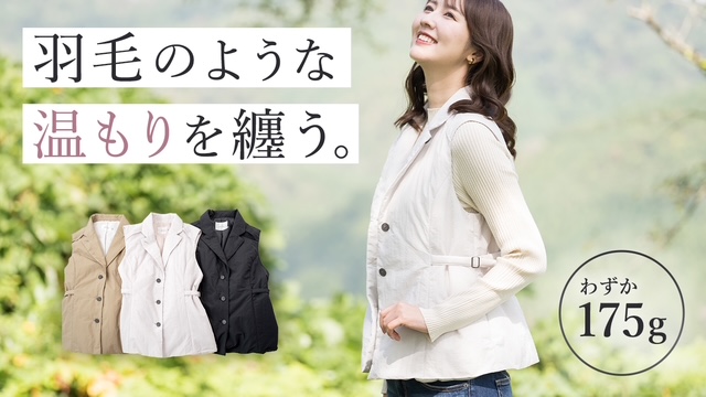 2.【中綿入りベストのイメージを変える】仕事も行事も休日も、自信を持って着ていける上品デザイン