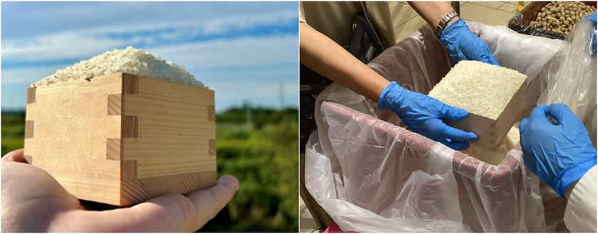 千葉県期待の新品種「粒すけ」の大粒米を升から溢れるまで盛れる体験!2日間限定でご用意。お米がどんどん積み上がっていく様子はまるで“小さなお米の山作り”。家族や友達と競争したり、盛り方のコツを相談したり、笑顔あふれるひとときが楽しめます。