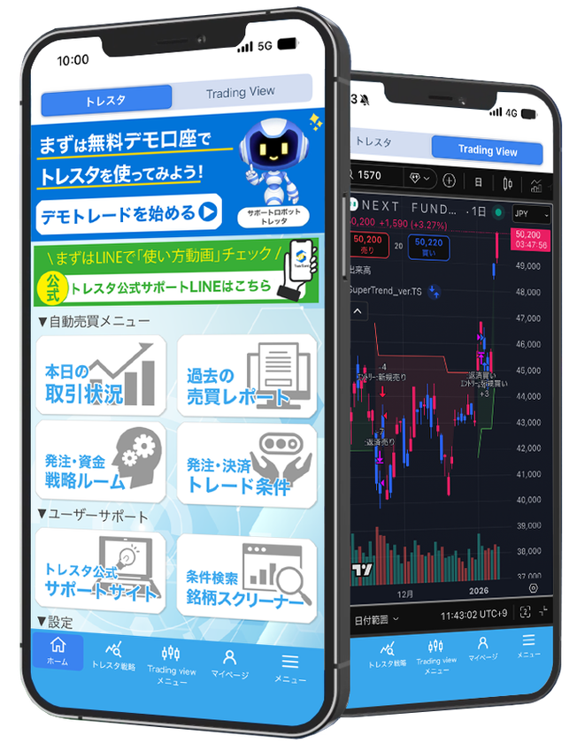 今回のアップデートでは、TradingViewをアプリ内に統合し、日本株CFDにも新たに対応することで、システムトレードによる株自動売買を、より直感的かつスムーズに行える環境を実現しました。