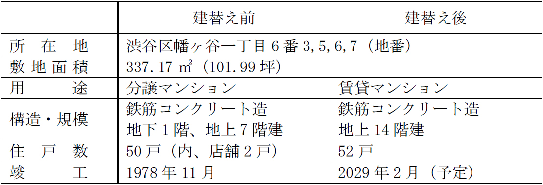 その中で、当社は、2023年に管理組合から敷地売却事業の検討推進を目的とする事業協力者に選定され、権利者との個別面談や説明会を通じて合意形成や行政手続きに取り組み、今般、渋谷区から分配金取得計画の認可を受け、本事業の敷地売却組合から土地建物を取得しました。