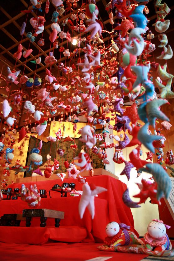 ひな祭りのときに、雛壇の両脇に手作りの人形をつるす「雛のつるし飾り」という伝統文化が残る伊豆稲取温泉。