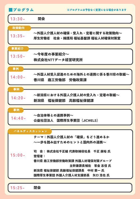 テーマ : 自治体・事業者のための外国人介護人材確保・定着セミナー