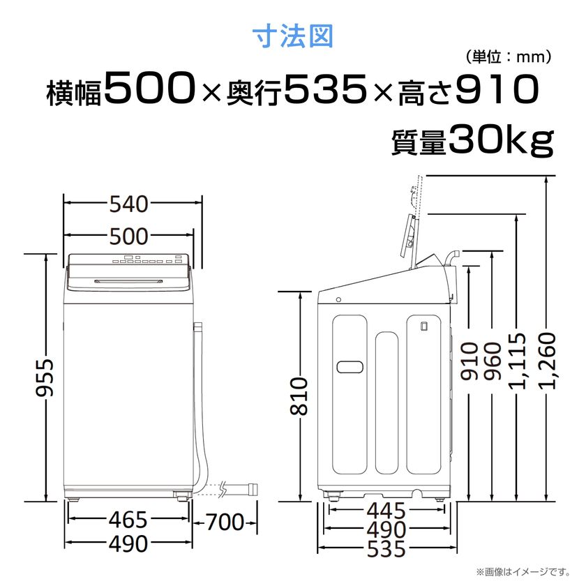 視認性の良い操作パネルを本体上部の後ろに配置しているため、手前側がスッキリ。衣類を出し入れしやすい構造です。