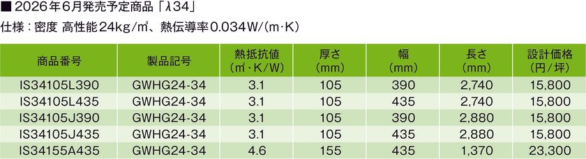 ■24K(密度24kg/m3/立方メートル)品の熱伝導率λ35→λ34で充填断熱の新標準へ