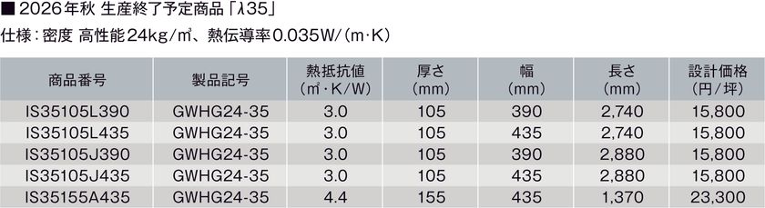 断熱性の高い開口部や付加断熱と合わせて検討することで、GX志向型住宅水準の外皮仕様の実現にも寄与します。「λ34」のラインナップ発売に伴い「λ35」のラインナップは、2026年秋に生産終了を予定しています。