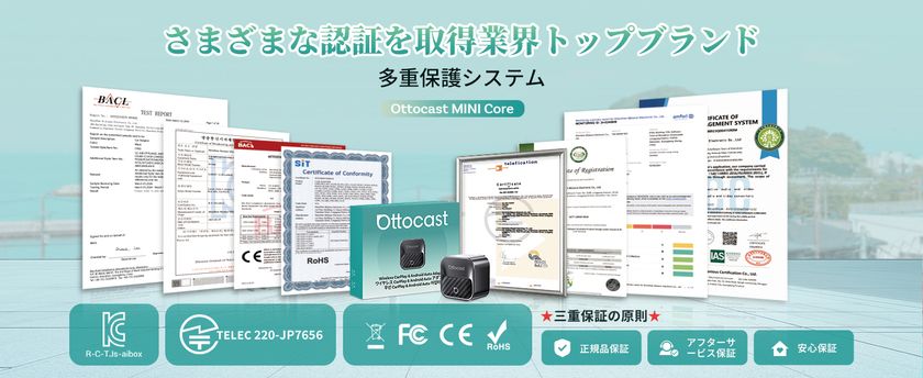 日本で多くのCarPlay製品の実績を持つOttocast社によって製造された製品であり、技適<220-JP7656>を取得しています。
