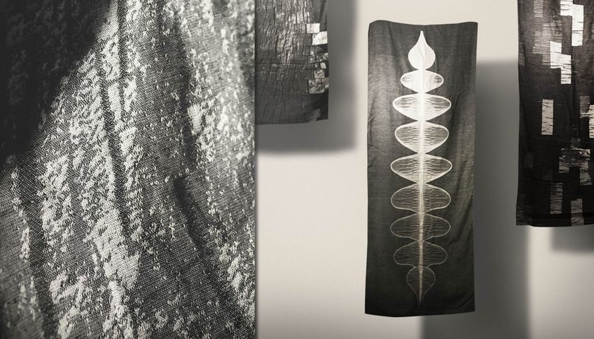 今治タオルを製造する老舗メーカーである渡辺パイル織物株式会社とのコラボレーションにより、ジャカード織りによるテキスタイルを制作。