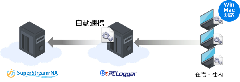 本連携では、勤怠管理として『SuperStream-NX 勤怠管理』の導入企業に対して、『ez-PCLogger』で収集したPCのログオン&ログオフ情報の自動連携を実現します。