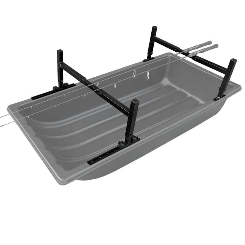 大型ソリ、ジェットスレッドに取り付ける専用ラックです。ソリのヘリから高さを持たせることで、ギアや釣り竿などの長物を収納できるスペースを確保します。