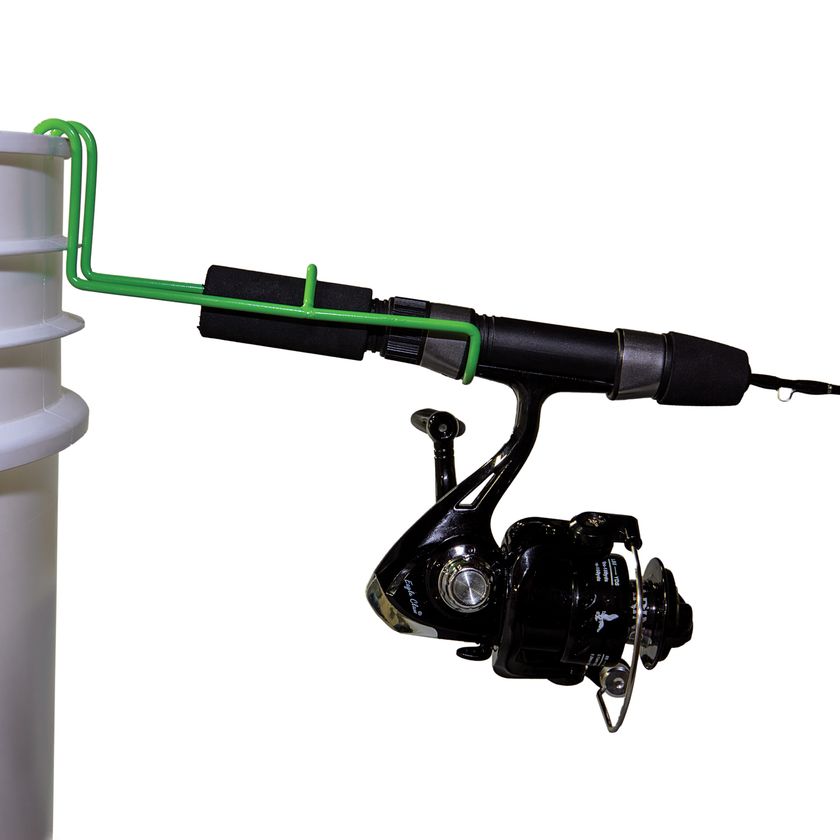 氷上やバケツに取り付けて使うことで大物が竿を穴に引き込むのを防ぎます。頑丈なスチール製で、表面は錆を防ぐソフトタッチラバーコーティング。