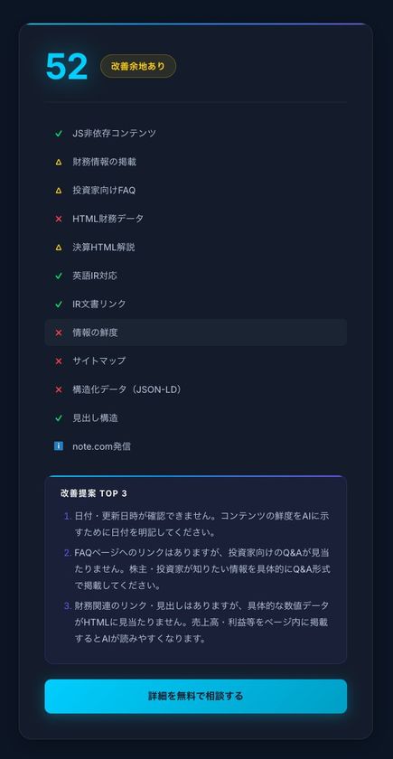 ・IRサイト/資料/FAQのどこを直すべきか優先順位が明確になる
