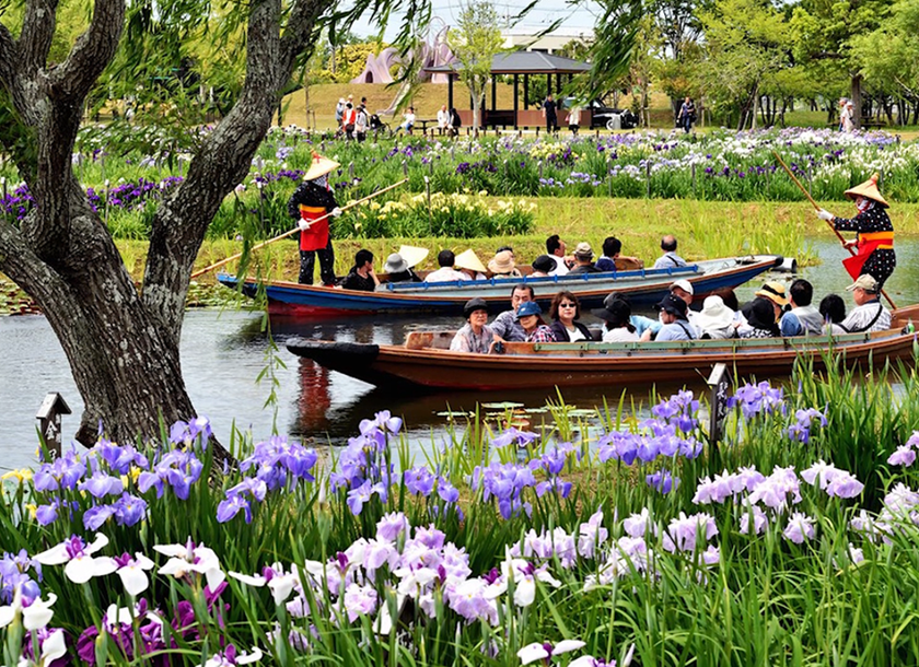 水郷佐原あやめパークに、400品種150万本の花菖蒲が咲き誇ります。一面に広がる紫や白のグラデーションは圧巻。小舟に揺られながら昔懐かしい水郷の情緒を味わえます。
