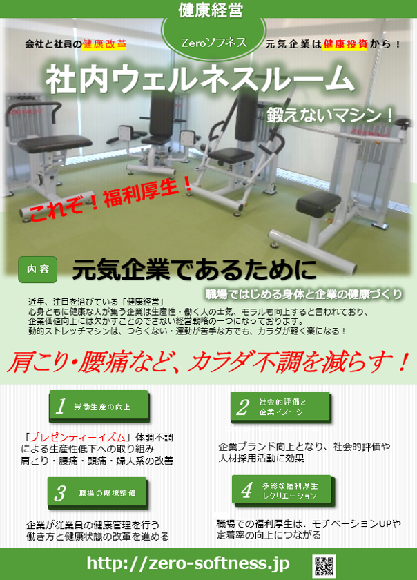誰もが持っている身体の悩み改善やリフレッシュ環境を社内に整備することで、生産性向上と働きがいの実現を目指しています。