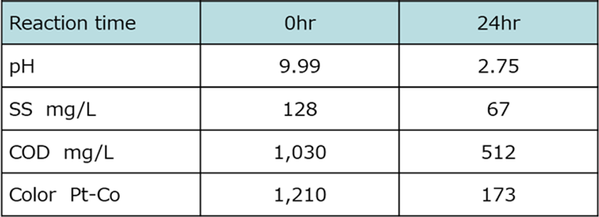 色処理薬剤費用が処理関連コストの7割近くになっており、また処理水槽・生物処理槽の設置面積も大きい。ランニングコストと汚泥処理費用削減、処理設備のコンパクト化が可能なら、すぐにでも導入したい、と非常に積極的に協力していただいています。