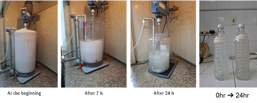 当社での活性酸素水処理はほぼすべて高濃度処理でした。今回のアンモニア処理は、浄水場では高濃度ですが、排水処理では非常に低濃度になります。今までのような処理システムでは、有機物との接触効率が悪くなりますので、処理時間が長くなってしまいます。現在、活性酸素バブルとアンモニアの接触効率を上げる方法を検討しており、2月後半に再確認の予定になっています。