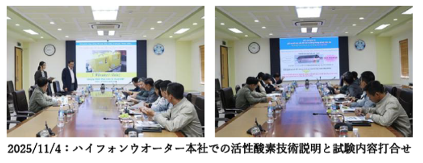 ハイフォンウオーターではイニシャルコストを抑えて、有機物(特にアンモニア態窒素)を効果的に処理できる技術を探査しており、オゾン処理に可能性を見出してはいたが、能力・コスト面から導入決定できなかったので、当社の活性酸素処理に非常に期待している、といっていただいています。