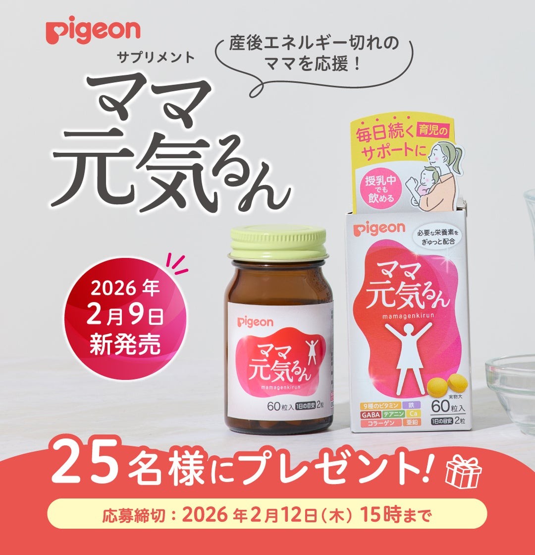 ピジョン株式会社(本社:東京、社長:矢野 亮)は、産後ママの元気に必要な栄養素をバランスよく配合し、毎日育児を頑張るママをサポートするサプリメント「ママ元気るん」を、2026年2月9日(月)より全国のベビー用品専門店・ドラッグストア、当社の公式オンラインショップにて販売を開始します。