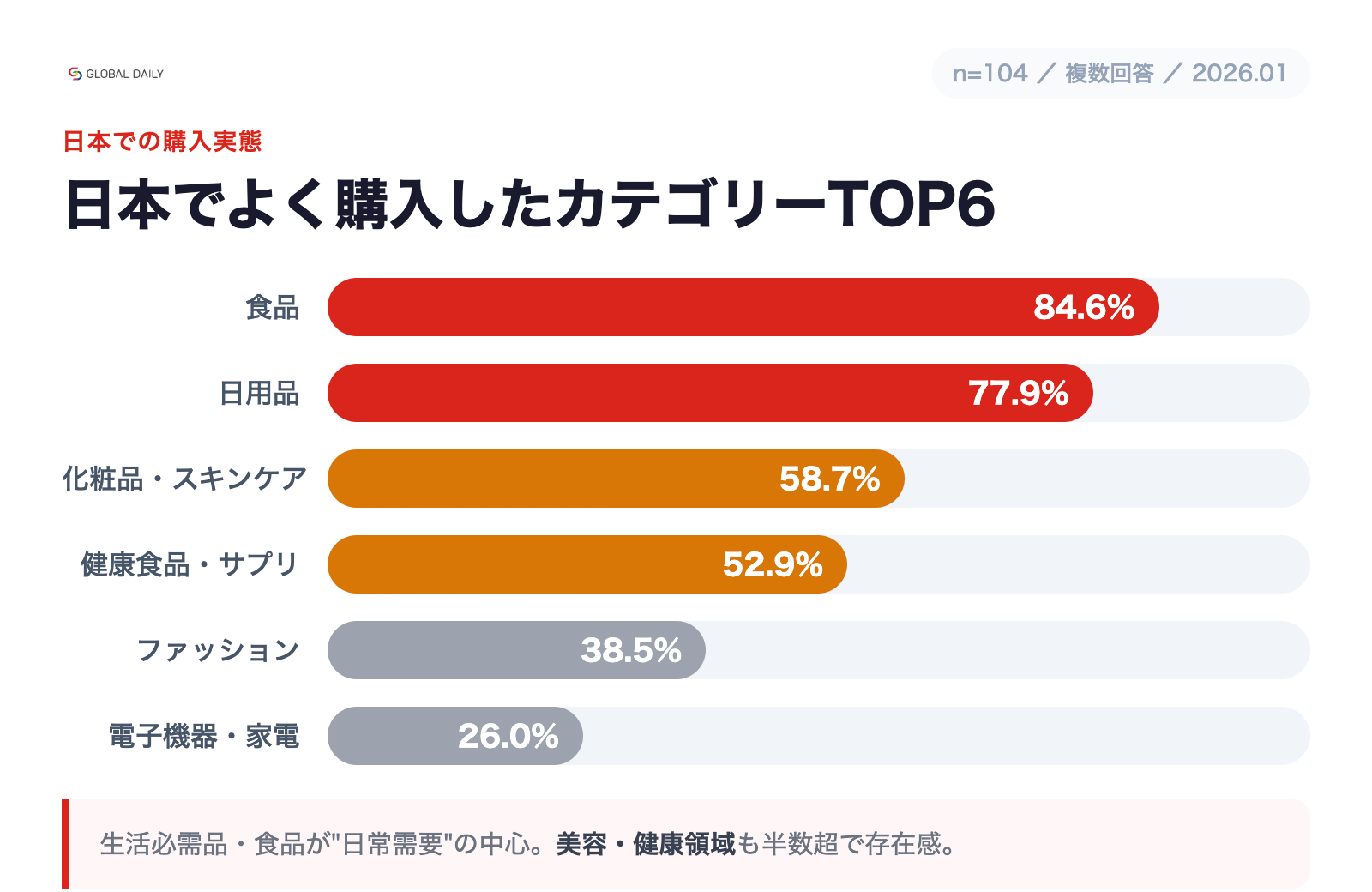 1)日本での購入実態:生活必需品・食品が“日常需要の中心”