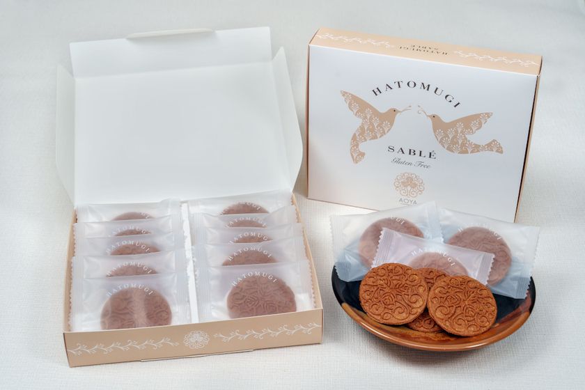 小山市の老舗和菓子店「蛸屋」が今回のリニューアルに合わせ初出品。「AOYA CAMPAGNE」が贈る、小山市が国内有数の生産地であるはとむぎと、てんさい糖を使い、からだも笑顔になるグルテンフリーのサブレは、素材本来の香ばしさと自然の甘みが魅力。