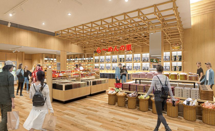 天井まで連なる木格子が圧倒的な迫力を生む「らーめんウォール」を設置。地元人気店の商品やSA限定の逸品が一堂に並び、旅の途中に、自分だけの“お気に入りの一杯”と出会う楽しさが広がります。