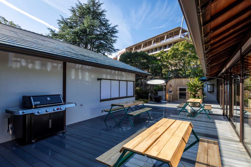 5つの寝室を備えた6LDKの施設を中心に、「ひとの心に植物を植える」活動で知られる、そら植物園が監修した庭園とバレルサウナ、ガス式BBQコンロを備えたテラスを完備。