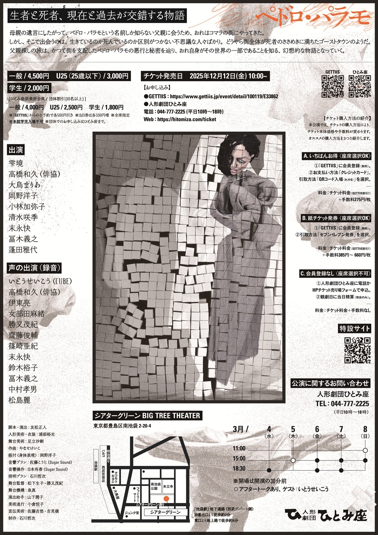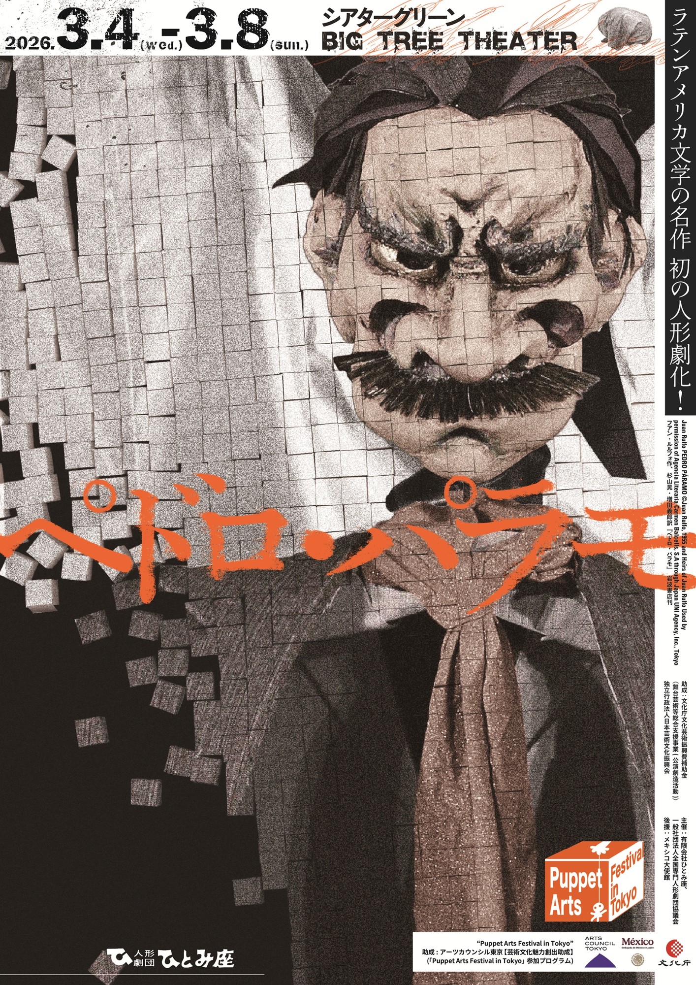 人形劇団ひとみ座 人形劇「ペドロ・パラモ」が2026年3月4日 (水) ~ 3月8日 (日)にシアターグリーン BIG TREE THEATER(東京都豊島区南池袋2-20-4)にて上演されます。