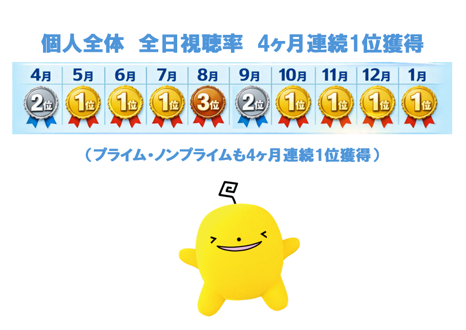 2026年1月の視聴率において4冠を達成できました。