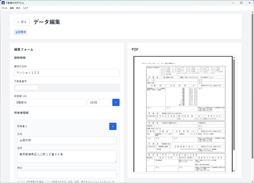 この度当社は、PDFに記載される不動産登記情報をOCRの技術を使い一括でデータ化するアプリを開発しました。