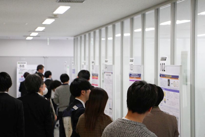 当日は、120名を超える大学院生・学部生による研究内容と研究成果を紹介するポスター発表を行います。また、生命科学部・藤井孝太郎准教授による特別講演「構造科学に基づく固体材料の機能性解明と新材料探索」も行います。ポスター発表と同一会場で本学理系学部、理系大学院の学生を対象とした「キャリア相談会」も同時開催します。