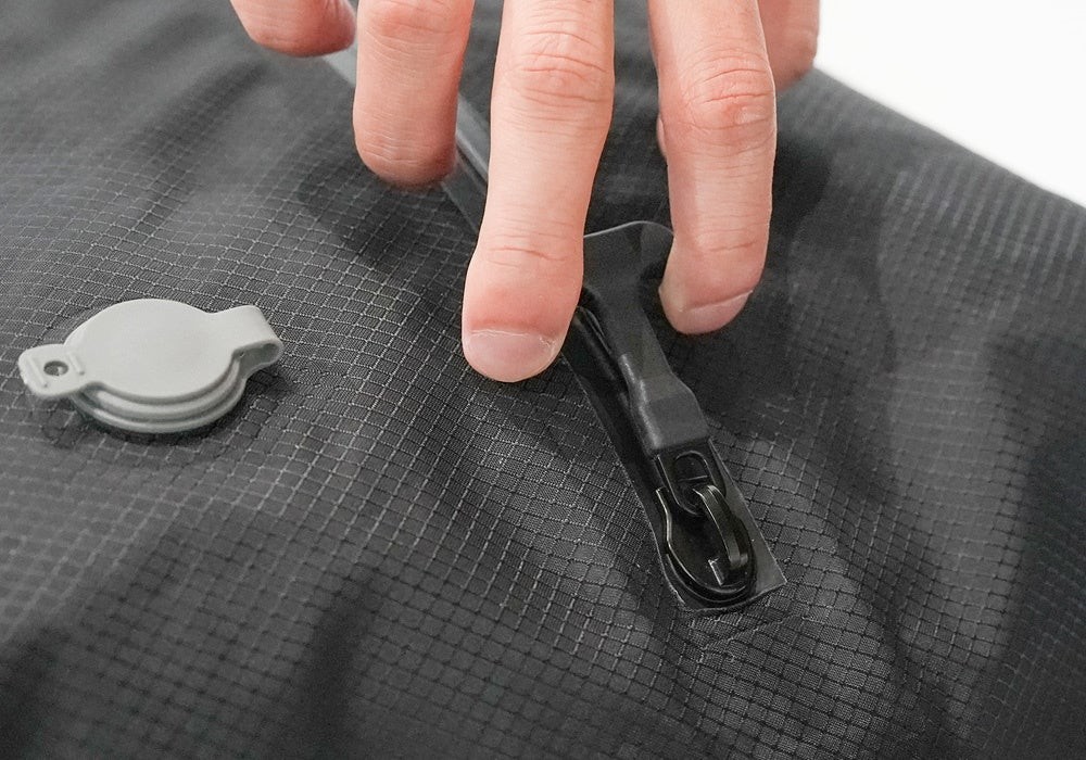 耐久性と機能性を兼ね備えた、防水・防気ジッパーを採用。高い負荷に耐えうる頑丈な設計。空気も水も通さない圧倒的な密閉力で、衣類を確実に保護します。